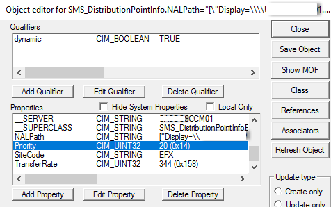 This first code connects to your SCCM server (I usually run it from my sccm server) gathers a list of DP's, does a WQL query for the priority property within the root/sms/site<sitecode> namespace for each DP