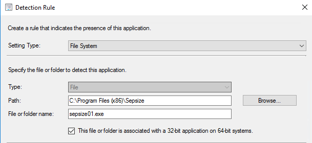 Installation Program = Powershell.exe -ExecutionPolicy ByPass -File "Sepsize_install.ps1"