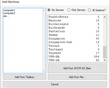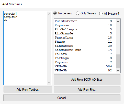 You can type in computer names to add from the textbox area the select "Add From Textbox"