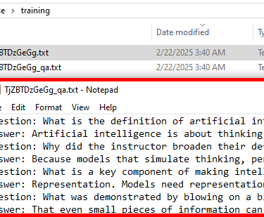 As you can see we have the saved transcript and we have the Questions and answers based on the material. I didn't make it all pretty and formatted, but it's easy enough to use.