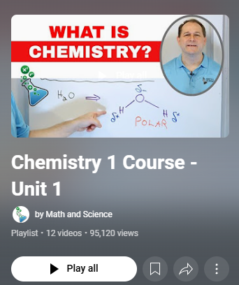 Do you have kids? are they taking a Math or Science class? Maybe a Chemistry class, but you don't remember chemistry. Why not have a refresher with some study questions to help your kid out? 12 videos right here. You get the transcripts and Questions and answer sheets.