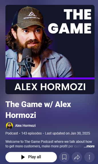 Or are you a business guy, do you want to be one? why not get study material from Alex Hormozi's podcast "The Game"?