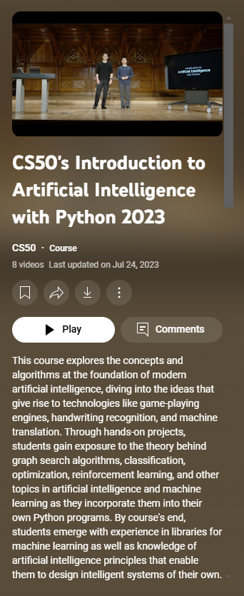 Here is the playlist for Harvards' CS50 intro to AI. 8 videos over 1hour long. Make yourself a study sheet based on all the lectures with the click of a button. Learning on easy mode. and since we're using AI to create the questions based on the material we can run it a few times to generate different varying questions based on the same material to further enhance your understanding. And not to spoil the punchline, but it's FREE. you don't have to buy tokens from ChatGPT, Claude, Perplexity, Deepseek, etc. because it is running the AI from your own computer to generate these questions.