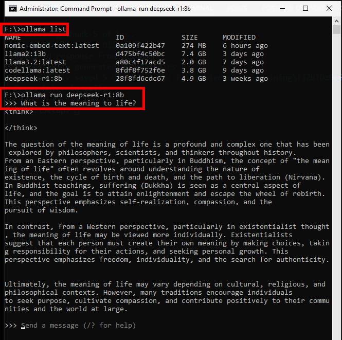 open a command prompt and type "Ollama run <model>" to ask a question.
